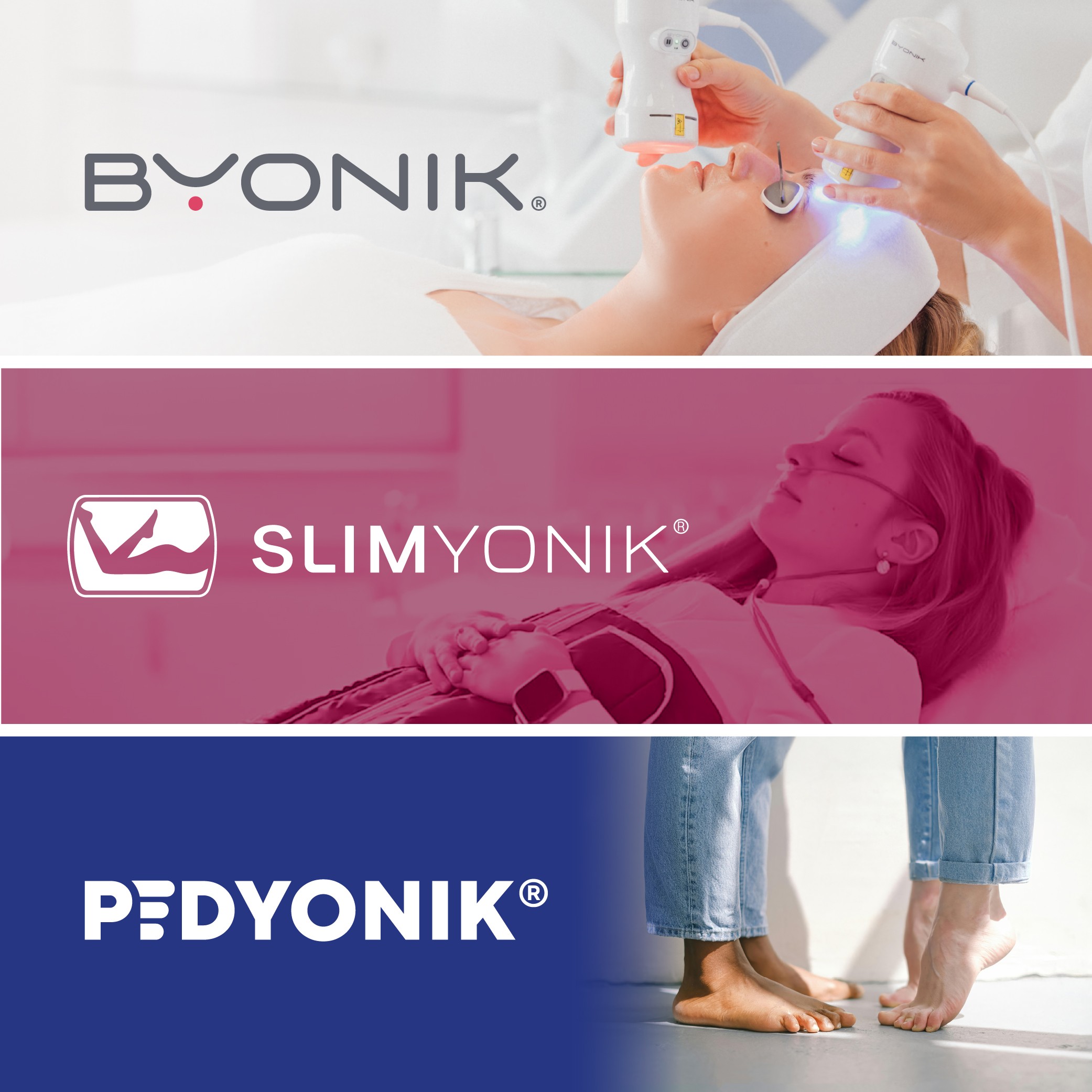Wir sind ein innovatives und wachsendes Unternehmen in der professionellen Kosmetikbranche und stehen für technologische Innovation, hochwertige Pflegeprodukte, moderne Hautpflegekonzepte und persönliche Betreuung unserer Kund*innen – mit unseren Marken BYONIK, SLIMYONIK und PEDYONIK.